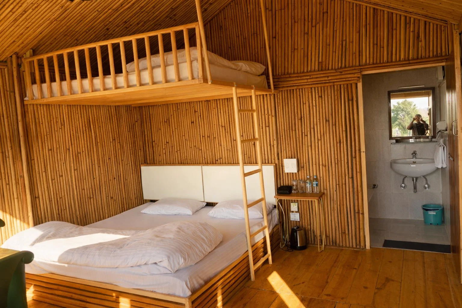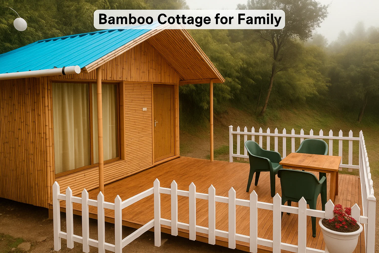 Our Bamboo Cottage, beautifully crafted from natural bamboo, offers a cozy and eco-friendly stay. Perfect for a family with two children, this charming cottage is a favorite among kids for its unique design and close-to-nature feel. A peaceful space where families can relax and create happy memories together.